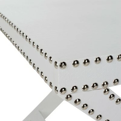 The Jeanine X Bench would feel at home among the chic décor of a Deco Manhattan apartment as easily as a contemporary Hollywood mansion. Crafted with iron nail head detail, Jeanine is perfect for any interior that requires a glamorous finishing touch. Care Instructions: Dust regularly with a soft, dry cloth. Never use oiled or treated cloths on lacquered finishes. Some finishes can be wiped with a damp (not wet) cloth, followed at once by rubbing with a dry cloth to remove fingerprints and smudges. For persistent spots, gently clean with a soft cloth and a solution of water and mild soap, make sure to wipe dry. Use adhesive felt pads, coasters and placemats to protect your furniture.