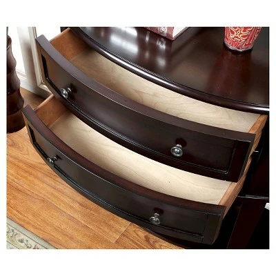 Bring a splash of elegant and rustic style to your living space with this End Table from HOMES: Inside + Out. Made of sturdy and durable wood with a rich Espresso color, it has a curved front with 2 drawers for storing small items. The spacious tabletop and curved bottom shelf hold a lamp, photographs, flowers, plants, decorative accents and much more. The tapered legs and half dome design add eye-catching appeal to the decor of any room.