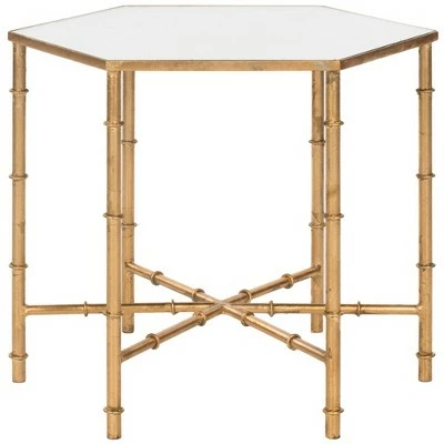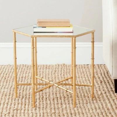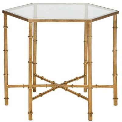 The updated Asian elegance of the Kerri Accent Table’s faux bamboo blends classic Chinoiserie style and exotic detail. With gold leaf finish on its forged iron base and a clear glass top, Kerri brings sophisticated, eclectic flair to any décor. Constructed from gold colored iron with a Lacquer Coating finish, this table is able to support up to twenty two pounds. Each item is uniquely hand crafted by artisans. The Kerri hexagon table is the perfect choice for Glam, Oriental or Transitional styled rooms.