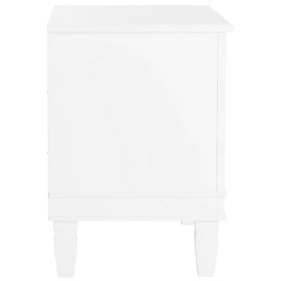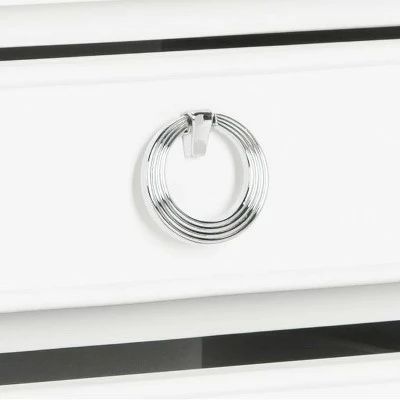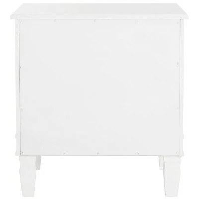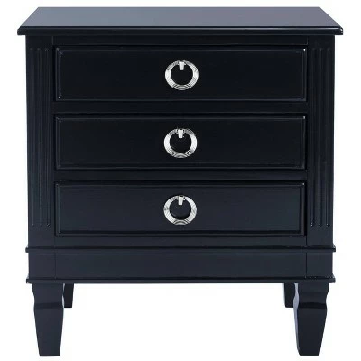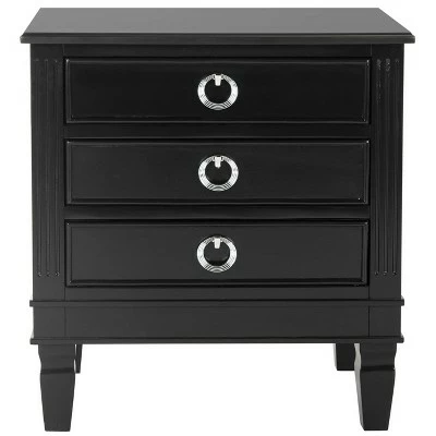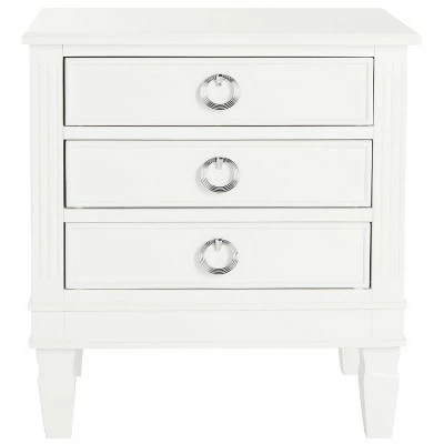 Bring the charm of the legendary Paris’ brocantes to any space with this classic nightstand. Crafted with French style wood details and chic silver pulls on its ample three drawers, its quintessential hue makes a graceful statement in any boudoir. Strikingly simple, this hardworking piece maximizes storage with its three pullout drawers. Constructed from Rubber wood and chrome colored iron, this night stand is able to hold up to forty five pounds. The Kira side table is the perfect addition to Glam, Traditional or Transitional style décor.