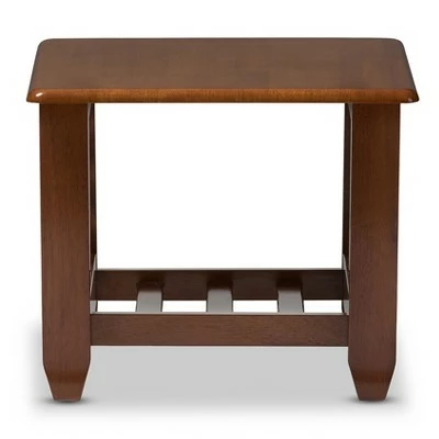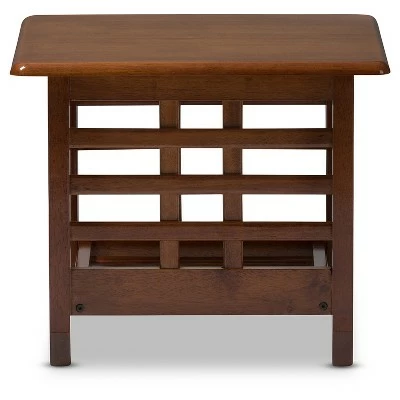 This end table is ideal to create an inviting cozy corner in your living space. A perfect fusion of age old artisanship and modern aesthetics, the table goes well with contemporary and ethnic decor alike. With an airy window pane design wood frame, the Larissa wooden end table is a great addition to compact homes. Featuring mission style modern classic design, the Larissa end table is constructed of eco-friendly solid rubberwood and rubberwood veneer. The table features strong and durable ready-to-assemble construction with slatted shelf for magazines and books. Supported by chunky wood blocks on four sides, the end table, with beveled edge, is finished in cherry finishing. The table looks great from all angles, whether in a lounge arrangement, public waiting area or private office. Made in Malaysia, the occasional end table requires assembly.