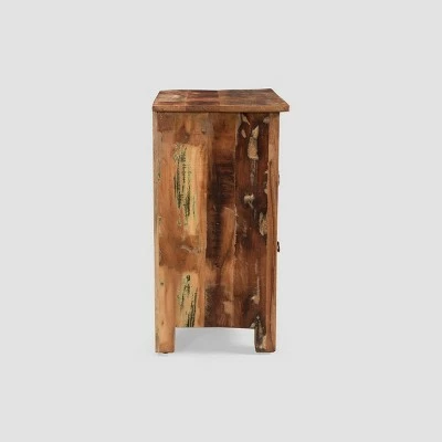 Complete your home with a one-of-kind accessory that brings a stunning hand-crafted look. Featuring recycled wood and artfully distressed paint, the color and finish of this Christopher Knight Home Laveer Wooden Side Table will vary by the piece, making this accessory the perfect unique addition to your home. This table brings a boho vibe to your space with a simple drawer and beautifully slatted cabinet door that also serves as convenient storage to organize any clutter. With this delightful Christopher Knight Home Laveer Wooden Side Table, your interior space will instantly transform with a touch of vintage charm and playful colors.