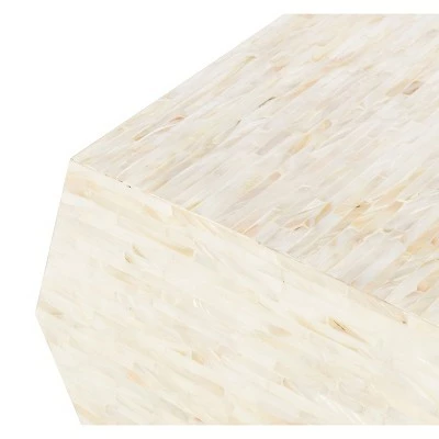 Bold and beautiful, the Lea Mosaiac Geometric side table can instantly transform any living room or bedroom with its modern, contemporary and glamorous style. Designed with lacquered faux mother-of-pearl material, its soft beige combination of neutral tones illuminate its dynamic sculptural form to create a chic, functional focal point. This unique and stylish design helps add to a room by becoming a piece of art in itself. The Lesa Mosaic Geometric does not require assembly.