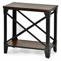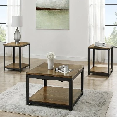 Add function and industrial style to your living room with the Logan End table. Mixed-media construction blends with rustic design in the brushed mocha finish on the top and lower shelf and rustic iron frame with exposed rivets. The large bottom shelf is perfect for storage or display of your favorite items. Your purchase includes one end table.