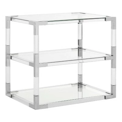 Three times the charm. The Louisa End Table is a petit princess. Its acrylic and glass shelves are anchored by sophisticated bronze brass details that create instant rapport in any décor. Ideal for ensuring all of life’s indulgences are at hand. The cool mod design and bright elegant details of this end table makes it a perfect addition for contemporary, modern, or transitional rooms. It is available in multiple colors to best suit your personal tastes and decor.