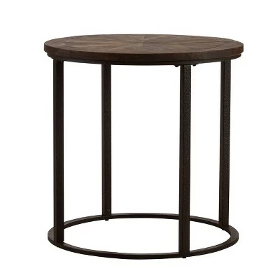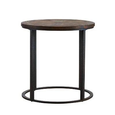 Construct a rustic design with the Aiden Lane Lymedon Round Reclaimed Wood End Table. An industrial metal frame raises the stakes, while a round tabletop keeps your style down to earth with recycled wood. Stack your favorite books on the sunburst patterned top, or go for a minimalist look with a simple vase or potted succulent. In your living room or open concept space, this two tone accent table brings out your industrial side.