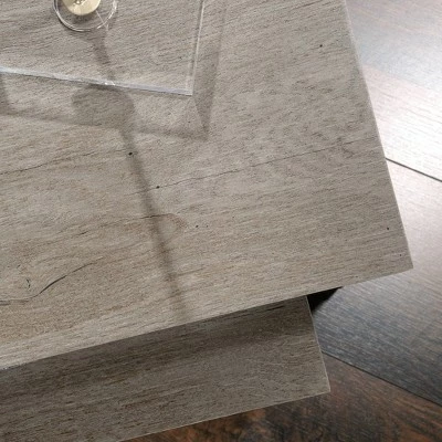 Style and convenience – that’s what you’ll get with these nesting tables from the Manhattan Gate collection. This unique set of tables features one small and one large table that can conveniently slide together to create a space saving storage solution that is perfect for any room in your home. These two tables have multiple functions. Use them around your home to display your favorite home décor items like your array of knick-knacks, decorative plants and photos of your family and friends. They also make the perfect spot to store items like stacks of magazines, the TV remote, your reading glasses and even a refreshing ice-cold beverage. The options are endless! They both feature a strong and lightweight panel construction along with powder coated metal end caps. They are each finished on all sides for versatile placement throughout any room in your home –the living room, down the hallway or in your office. Finished in Mystic Oak, these beautiful nesting tables add style and functionality to your home.