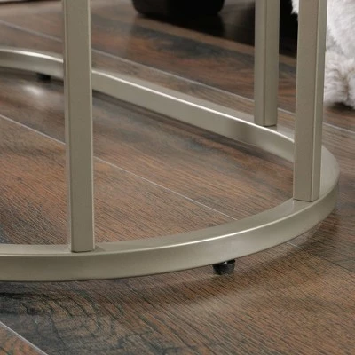 The perfect side table does exist. Give your home the style it deserves with the modern appeal and farmhouse charm of this side table from the Manhattan Gate collection. This unique end table offers a spacious top surface that provides you with room for items like the TV remote, coasters, decorative plants, and your hot cup of coffee. The top also lifts off and functions as a removable tray so you can serve your guests in style. The top is detailed with a pebble texture to give it a one-of-a-kind style that is sure to stand out in your home. This side table features a powder coated metal frame with a sturdy base and six strong legs. This couch-side table is finished on all sides for versatile placement throughout any room in your home.. Finished in Ivory, this stunning side table is just what your home has been looking for.