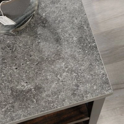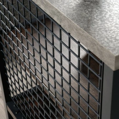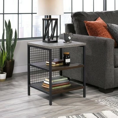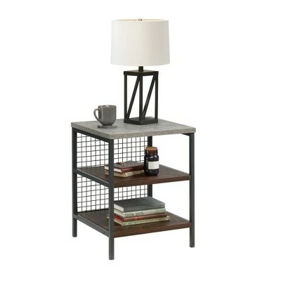 The perfect side table does exist! Update the look of your living room when you add the industrial-inspired and design of this side table from the Market Commons collection. This metal and wood side table offers a spacious top surface that provides you with the room you need to store and display different items like an accent lamp, decorative plants, framed photos of your family, and a refreshing ice-cold drink. Its strong and lightweight 1″ panel construction provides you with ease if you decide to move it to another spot or another room. This modern side table features open shelving for additional storage and display of items like your favorite books, crossword puzzles, organizing bins and your reading glasses. Its durable, powder coated metal frame and wire mesh back make this side table stand out no matter where it is. Finished on all sides in Rich Walnut with Slate Gray accents, this stunning side table is just what your home needs.