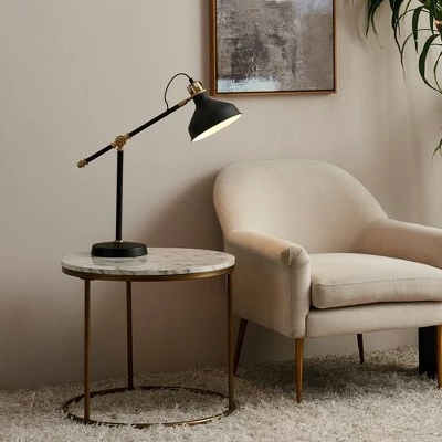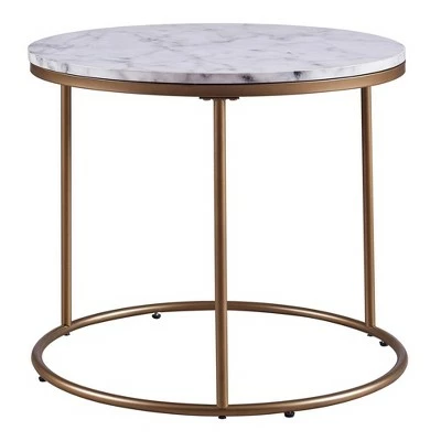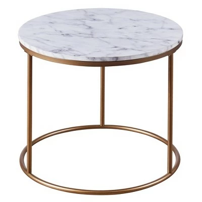 - STYLE: This classic side table is a luxury addition to any house, apartment, foyer, hotel lobby or your entertainment room. Brass finish metal legs, the faux marble table top blends well with both modern and transitional styles. A hollow frame design provides a display and storage space under which is a space saver to your home.