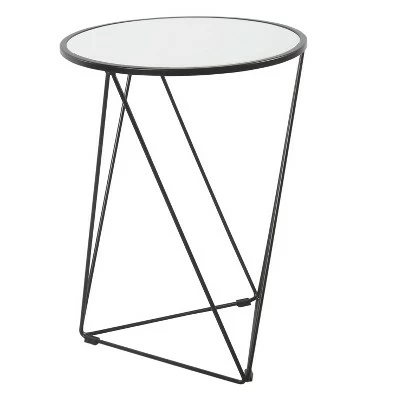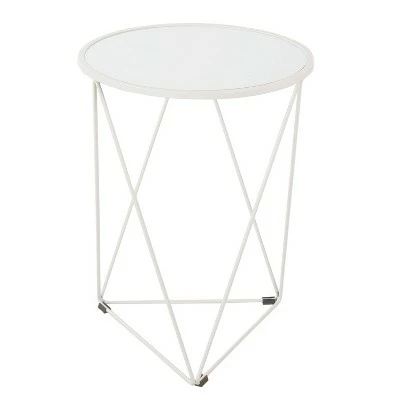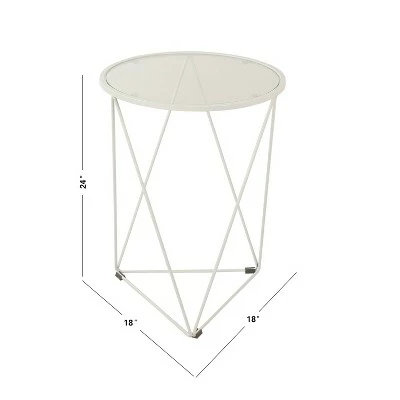 With a white metal triangle base and round glass top, this sleek accent table is a chic statement piece for the home. The geometric design of the base and the round clear top offers a minimalist look to this small metal accent table. At 24 inches tall, this small end table is the ideal size to be placed next to an accent chair, sofa, bedside, or in an entryway. In any space, this on-trend accent table is sure to catch the attention of your guests at your next cocktail party. Easy to assemble and maintain.