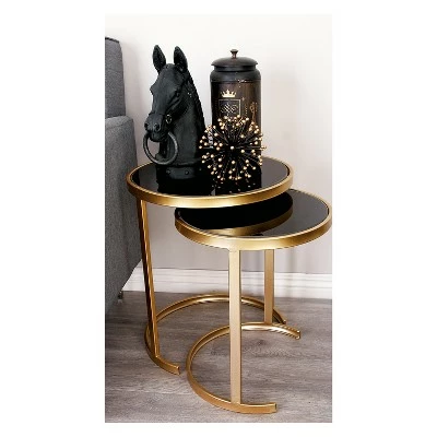 Metal and Glass (Set of 3) Round Nesting Tables Gold – Olivia & May