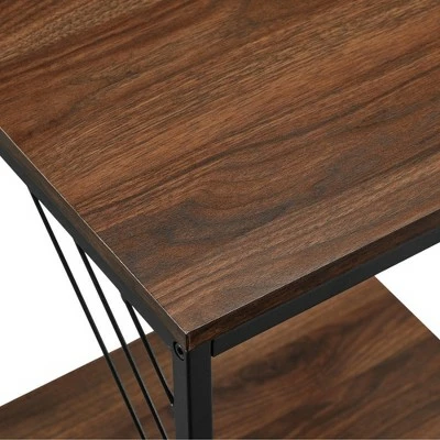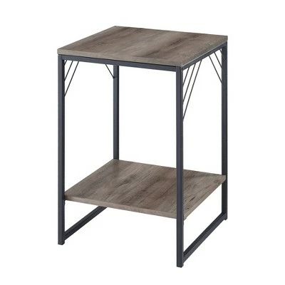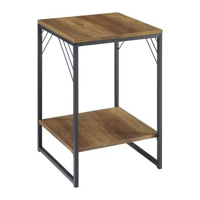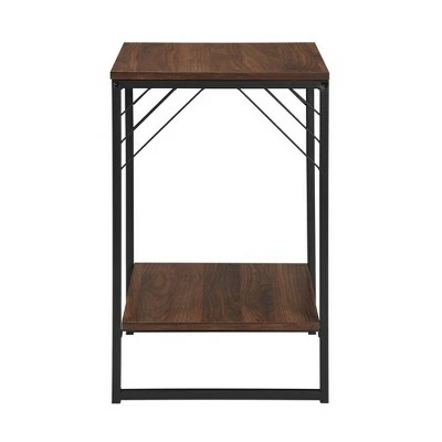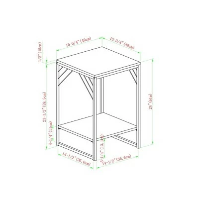 Bring an urban flair to your space with Saracina Home’s 16” Industrial metal Accent Side Table. Angled metal accent bars and continuous powder-coated legs generate its sophisticated vibe. Made from a high-grade MDF wood core, this warp-resistant end table is a solid addition to any living room. Its premium laminate finish provides a durable surface perfect for any bedside table designer dreams. A lower shelf offers ample from room for storage and décor.