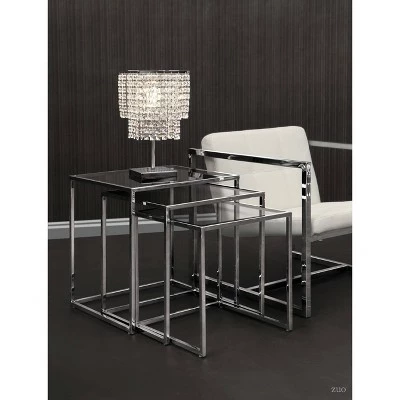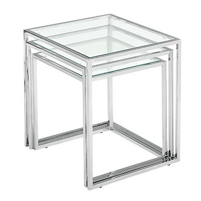 Like any nesting table, the possibilities are endless with the Pasos. It can be used in any space and in a multitude of ways. It is made of a chrome steel tube frame and with clear or black tempered glass.