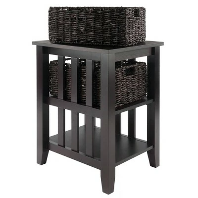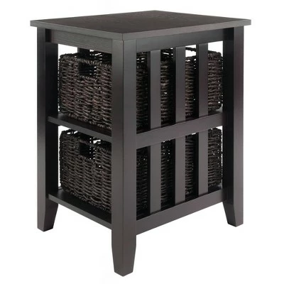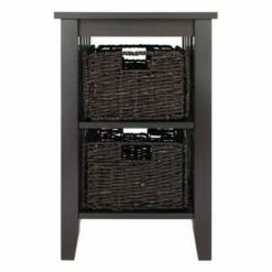 Whether you’re finishing your bathroom, walk-in closet or child’s room, this Morris Side Table with Baskets from Winsome is the ideal choice. This accent side table features a two-shelf design, and the included woven baskets provide a handy storage option that makes this piece ideal for keeping your items in place. The dark stain lends a sophisticated look, while the side slats are the perfect finishing touch. Whether you use this wooden side table to stash clothing, bathroom necessities or toys, you’ll love the refined feel it adds to your home.