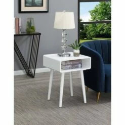 Embrace the Napa Valley essence and see your room take life with the Napa End Table with Shelf by Brighton Home. This end table will bring an attractive and soothing feel to any room with its curved edges and long tapered legs. The large tabletop also features an open cubby perfect to stow away entertainment essentials. With strong solid poplar wood legs and an MDF shelf finished with birch veneer, this table was engineered to last. Easy assembly requiring only 1 step. Complete the look with other pieces from the Napa Valley Collection from Brighton Home, each sold separately.