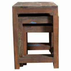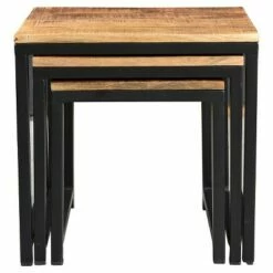 3pc Reclaimed Sheesham Wood and Iron Nesting Table Set Natural- Timbergirl
