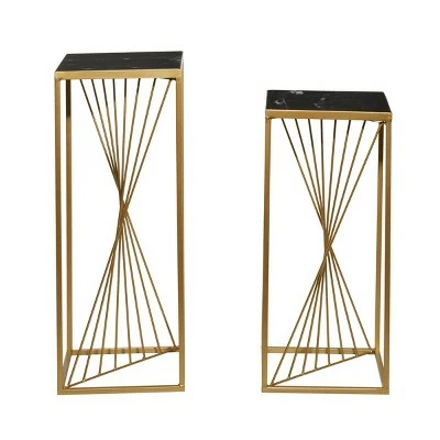 - Featuring gold and black finishes, this set of plant stands is ideal to use in contemporary or art deco interior design.