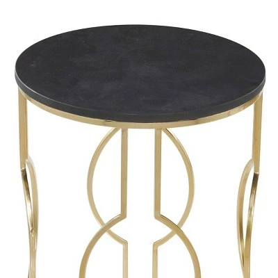 Suitable for a wide array of home decor styles, especially glam, modern, or contemporary. Bring a finishing touch to your home with an inviting appeal with this beautifully crafted accent table. A compact friendly table providing you with additional storage space any where in your home. Designed with stoppers at the base that prevent scratching furniture and table tops, as well as sliding around. Suitable for indoor use only. Marble is a product of nature and no two pieces are exactly alike, it is prone to variations in color and/or patterns in the material that adds to the beauty and charm of the piece. Maximum weight limit is 100 lbs. Made in India. Gold accent tables come as a set of 2. Contemporary design.