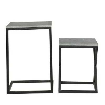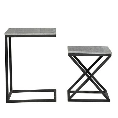 Olivia & May Set of 2 Marble and Metal Nesting Tables Black – Olivia & May