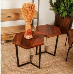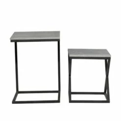 This stylish set of tables is perfect for a contemporary-style den. Bring a finishing touch to your home with an inviting appeal with this beautifully crafted accent table. A compact friendly table providing you with additional storage space any where in your home. Suitable for indoor use only. Maximum weight limit is 100 lbs. Made in India. This set includes three tables. Designed with an industrial theme.