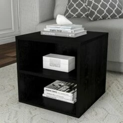 Hastings Home Stackable Modular Cube End Table With Open Sides – 15.75″ x 15.75″, Black