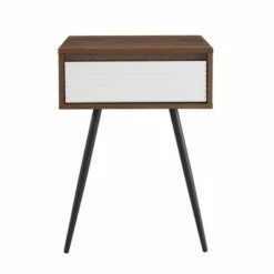 Mid-Century Modern Side Table with Lower Storage Rack – Saracina Home White/dark Brown Oak