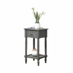 Breighton Home Johar Furniture American Heritage Baldwin with Drawer End Table White Marble/espresso