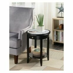 Breighton Home Wilson Mid Century Round End Table with Bottom Shelf – Johar Furniture Espresso