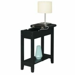 American Heritage Flip Top End Table with Charging Station and Shelf – Breighton Home Faux Birch/black