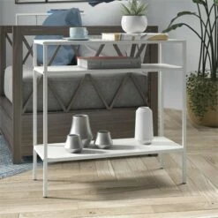 Henn& Hart Mid-Century Brass Metal Round Side Table with White Lacquer Shelf – Henn&Hart