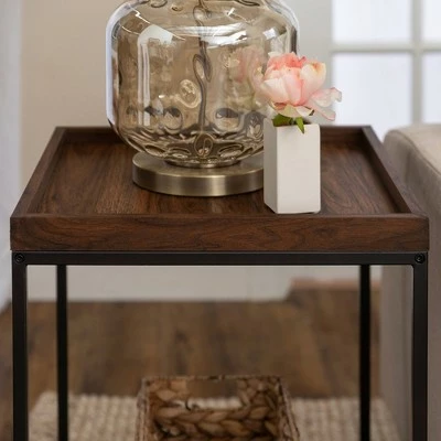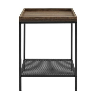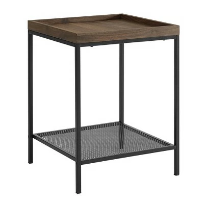 Spice up your life with the Rosalyn Industrial Glam Square Tray Side Table from Saracina Home. The tray-style table top prevents little things from toppling over the edge. This end table works incredibly well as in your vanity corner to keep cosmetics together. This two-tone accent table features a lower metal mesh shelf with a painted gold finish so you can store and display the appropriate decor to achieve your luxury life.