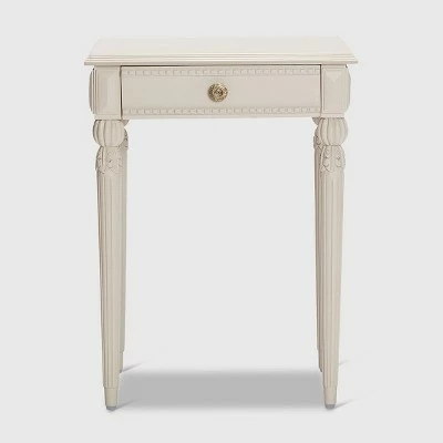 Whether holding books, headphones, or remotes, a simple yet functional bedside table can be difficult to find. This accent table is the storage solution to get the job done. Elegant in its simplicity, a single drawer hides away smaller items, while the sturdy wood top provides a place to set items down for the night. This decorative table also works well as a small accent table in an entryway or hallway, or next to your favorite lazy chair. This white accent table really can do it all.
