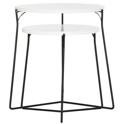 A designer favorite, this versatile modern end table was inspired by the poetic design of a contemporary art gallery in Ibiza. Its solid iron base features an elegant linear style ideally balanced by the light palette of its smooth circular top. The modern design of these stacking tables brings attention to the items displayed on top. Crafted from MDF wood and black iron, these tables are able to support up to a hundred pounds. These tables are the perfect addition for Contemporary, Modern or Transitional style rooms.