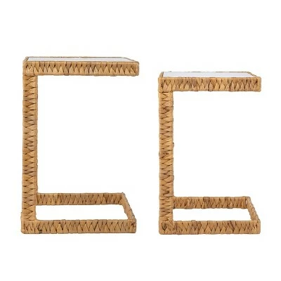 Make the most of your space with the Aiden Lane Bawor Water Hyacinth C Tables – 2pc Set. Two glass tabletops offer space for your drink or magazine, while natural water hyacinth adds unique texture and color. Tuck this table set into your living area to hold your latest reads, or place in your entryway to display flowers and potted plants. Give your home a coastal-inspired look with this set of nesting C tables.