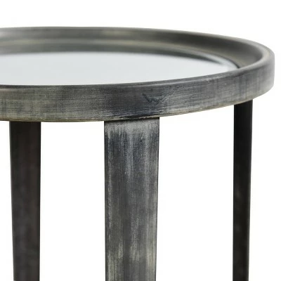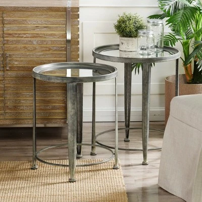 Complement your room’s design with this set of round nesting side tables from the Signature Collection by StyleCraft Home Collection. The durable iron frame is finished with a blackened silver-gray tone creating an industrial feel, while the mirrored inset tops soften the overall design. Nest these tables together or use them