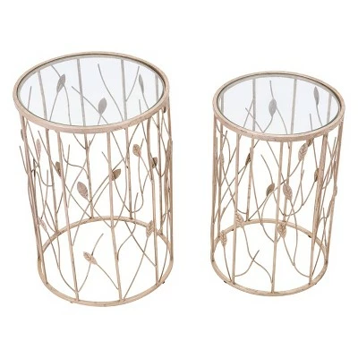 This set of two round tables allows for more space to place your snacks, beverages, or magazines. Its leaflike design adds life and movement to any home space. Its gold base will spice up the empty space next to your sofa or chair. Add plant life to your living room without having to water it.