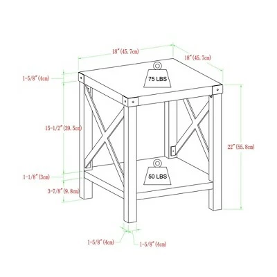 - Piece 1: Accent Table: 18 Inches (W) x 22 Inches (H) x 18 Inches (D), Quantity 1