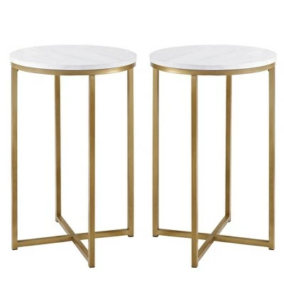 Add a splash of modern style to your living room with the Vivian Glam X-Leg Round Side Table Set by Saracina Home. Mixed materials and finishes make for an end table duo that will instantly glamourize your space, complement your décor, and set the stage for drinks and snacks. The geometric, X-style legs contrast the round top surfaces and create contemporary, harmonious silhouettes. Stylish and practical, these circular accent tables also include caps on the metal legs to protect your flooring from wear and tear. Tie the room together by pairing these pieces with Saracina Home’s matching coffee table.