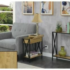 Tucson Flip Top End Table with Charging Station and Shelf English Oak/Black – Breighton Home
