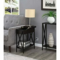 Tucson Flip Top End Table with Charging Station and Shelf Charcoal Gray/Black – Breighton Home