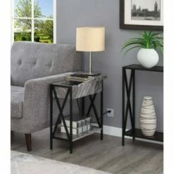 Tucson Flip Top End Table with Charging Station and Shelf Gray Faux Marble/Black – Breighton Home