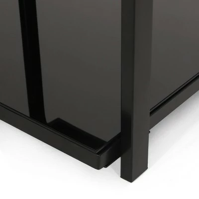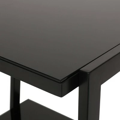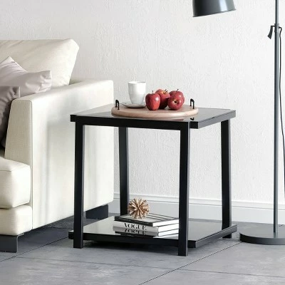 Keep things stylish with an accent piece that brings out the best of your interior decor. Featuring a wonderfully sleek black tempered glass top and open shelf, our side table is the perfect place for holding your favorite plant arrangement or a tray of snacks. This chic selection is supported by a clean, sturdy frame and complemented with a refined black finish, providing your living room a modern atmosphere. Completed with precise lines, this side table brings a clean and stylish feel to any home.