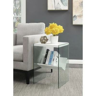 Keep your essentials close with the SoHo End Table with Shelf by Breighton Home. The minimalistic modern design is ideal for upgrading any living space in style. This piece is constructed with tempered glass sides and a sturdy surface top perfect for holding your remotes, electronics, and current reading material. The clear glass sides ensure magazines or books that are stored on the lower shelf are sure to be featured pieces in your room of choice. Shop additional contemporary pieces from the Soho collection by Breighton Home, each sold separately.