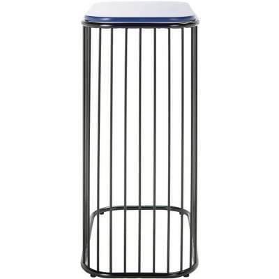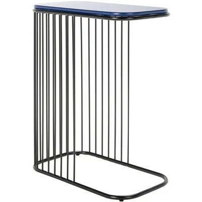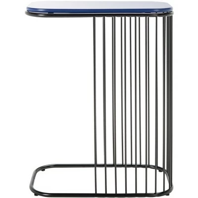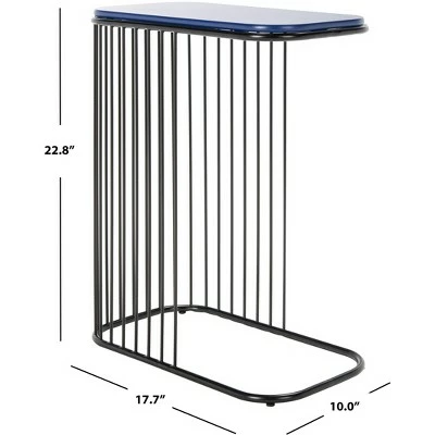 Translating modern metalcraft into glamorous contemporary dŽcor, this Stafford Side Table is absolutely stunning. The astonishing asymmetry of its open black frame highlights StaffordÕs striking silhouette, while a contrasting blue surface further enhances its artistic appeal. Care Instructions: Dust regularly with a soft, dry cloth. Never use oiled or treated cloths on lacquered finishes. Some finishes can be wiped with a damp (not wet) cloth, followed at once by rubbing with a dry cloth to remove fingerprints and smudges. For persistent spots, gently clean with a soft cloth and a solution of water and mild soap, make sure to wipe dry. Use adhesive felt pads, coasters and placemats to protect your furniture.
