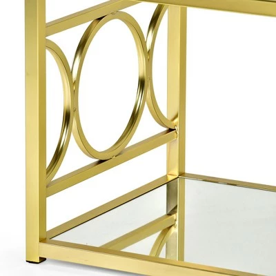 You will be spellbound by the stunning design of the Olympia collection. The gleaming gold chrome finish blends with the tempered glass top and mirrored base to create an end table unlike any other. The modern design and circular side design will be the highlight of your living space. Your purchase includes one end table.