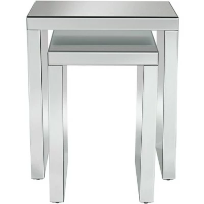 The glimmering design of this Fletcher two-piece nested table set from Studio 55D will offer a clean and elegant personality to any space. With a beveled mirror frame, this table set benefits from a refined quality. The two tables can conveniently fit together, stacked one on top of the other for convenient storage as needed.