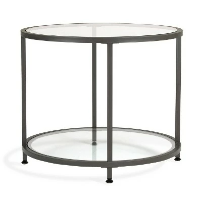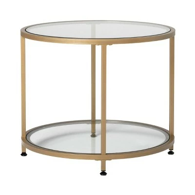 The simple, modern design will complete your living room’s seating area. This tables combine a stylish gold powder-coated, metal frame with durable 8 mm clear tempered glass. The simple lines and striking color easily complement any room. The multiple tiers provide plenty of display space for your everyday necessities. Floor Levelers are included for stability on any flooring surface. The Camber 26” Round End Table can be combined with the Camber 38” Round Coffee Table to create a set that will provide contemporary elegance to any interior design.