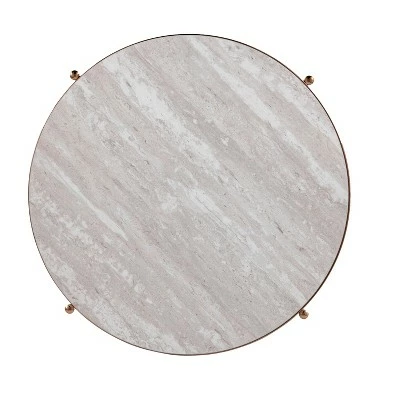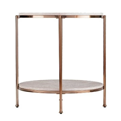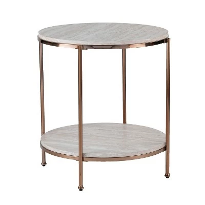 Round out your living room with the Aiden Lane Sula Round Faux Stone End Table. Faux travertine brings elegance, while metallic frame creates a sophisticated feel. Style and storage join forces with this side table.