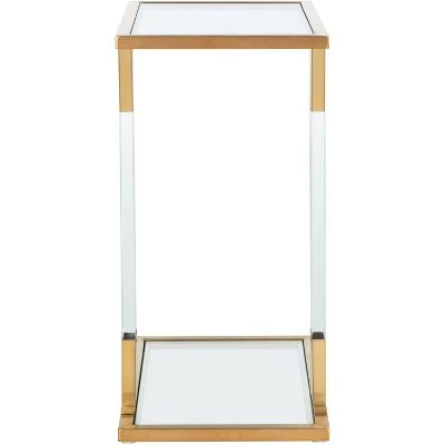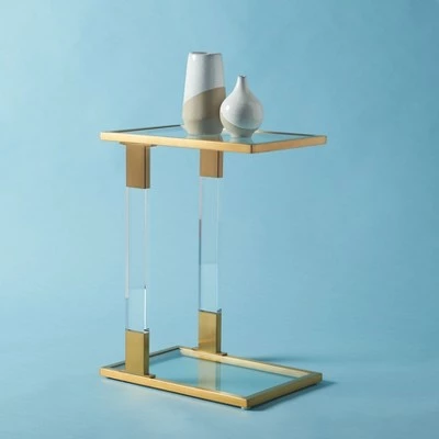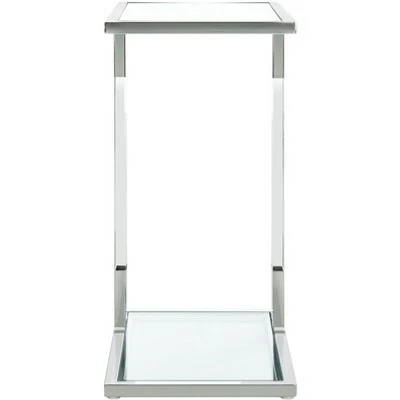 Overflowing with sophistication, this Tammi C-Table is a designer must-have for glamorous contemporary interiors. Crystal clear acrylic legs create an illusionary display that pairs perfectly with TammiÕs metallic borders and smooth glass surfaces, and the artistic asymmetry makes it elegantly eye-catching. Care Instructions: